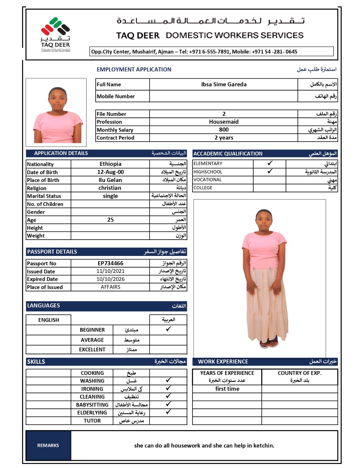 Ethiopian woman, 25 years old, Christian, first time...cleaning, washing, ironing, and seeing children